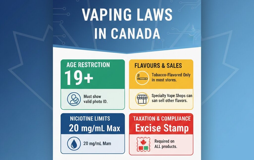Written By Faizan – Last Updated 9 Feb, 2026 Ultimate Compliance Guide for All Provinces & Territories Vaping is legal in Canada, but it is regulated through a complex, multi-layered system that changes the moment you cross provincial lines. To stay compliant in 2026, you must navigate three distinct tiers of law: Federal Rules: Governed […]